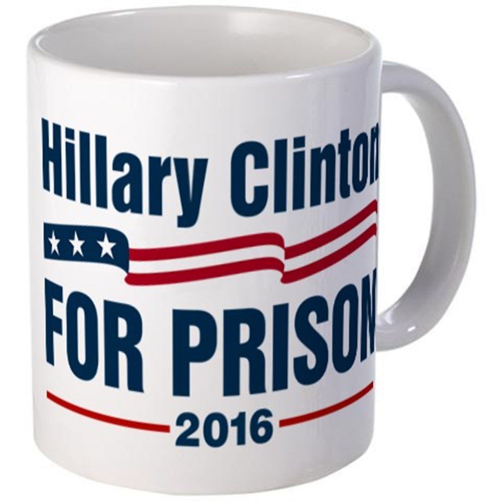 CafePress - Hillary Clinton For Prison 2016 Mugs - Unique Coffee Mug, 11oz Coffee Cup is best for youSize:Small | Color:White CafePress brings your passions to life with the perfect item for every occasion. With thousands of designs to choose from, you are certain to find the unique item you've been seeking. This coffee mug is the perfect drinkware companion. The smooth white ceramic and easy-grip handle feels great in your hand as you sip your morning brew or afternoon tea. Use it at home or in the office as a pen holder, displaying the funny or cute design. The design is professionally printed, making it the perfect novelty gift for both men and women, young or old. And taking care of this coffee mug is a cinch, as it can be used in the dishwasher or microwave. And with CafePress, your satisfaction is always our promise...buy with confidence, as we offer easy returns and exchanges and a 100% money back guarantee.
