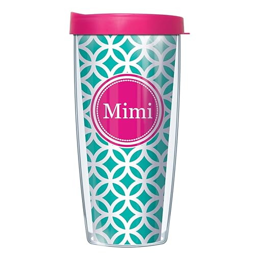 Why Use Mimi On Teal Roundabout Wrap Traveler 16 Oz Tumbler Cup with Pink Lid ?
