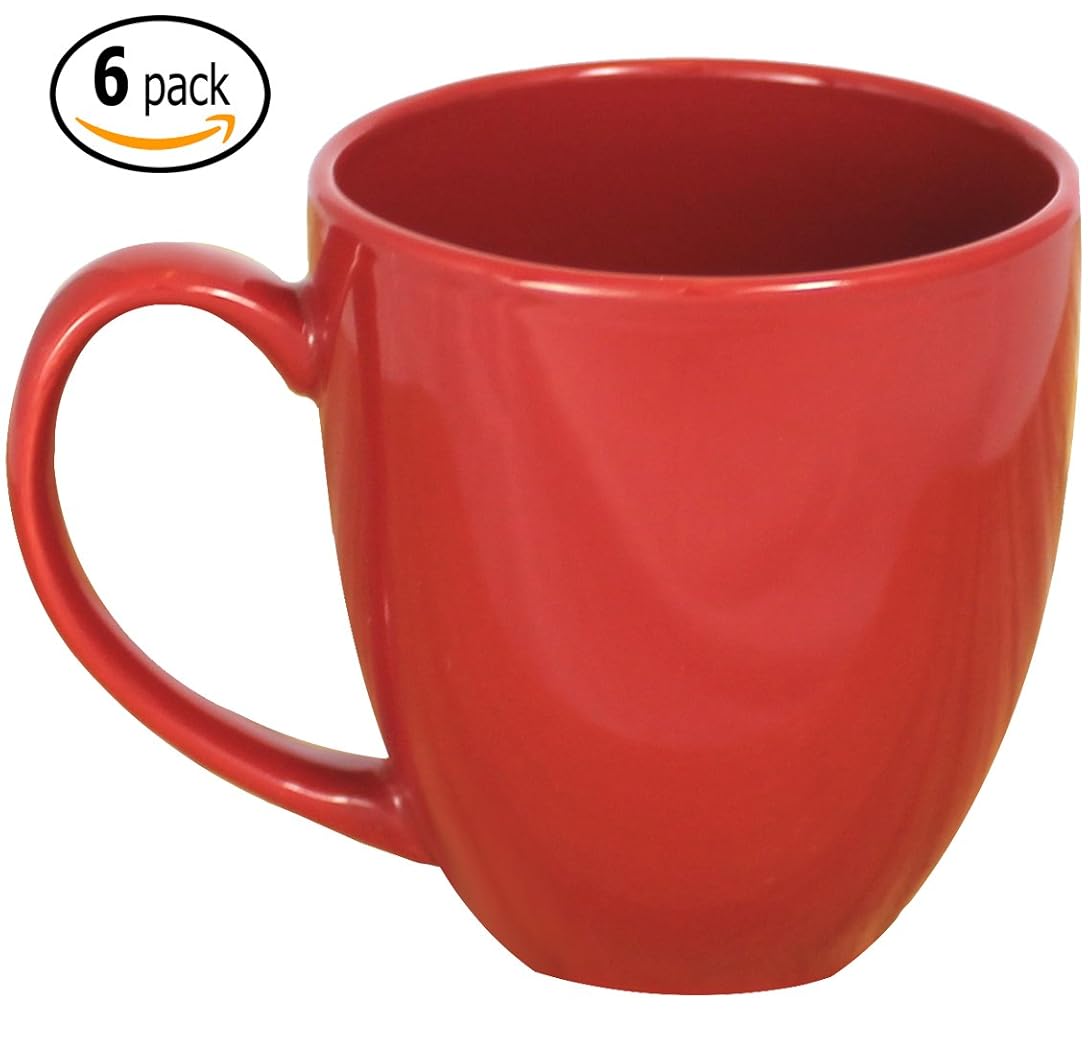 ITI Ceramic Bistro Coffee Mugs with Pan Scraper, 14 Ounce (6-Pack, Red) best Glassware & Drinkware