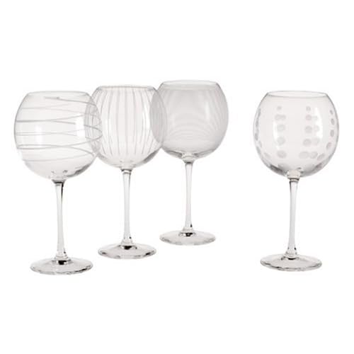Mikasa Cheers Balloon Goblet Wine Glass, 24.5-Ounce, Set of 4 is best for youProduct Description The fun and whimsical designs of the Cheers collection set a festive mood at any gathering. Each glass in the set of 4 is precision-etched with a different yet coordinating design. The dots, lines, and swirls are also distinctive, so each of your guests can easily identify their glass without the need for wine charms. The extra-large bowl of these glasses is designed to allow subtle wines, such as point noir, to gather their aromas. Dishwasher safe, top rack but hand wash recommended. Set of 4 balloon glasses, each holds 24-1/2 ounces. Amazon.com Infuse a little whimsy into any table setting with Mikasa's unique Cheers stemware collection. This charming line features lead crystal glass adorned with etched detailing in a variety of styles. Each member of the four-piece wine set boasts one of the following patterns: pinstripes, horizontal lines, circles, or a swirl. With its large, oversized shape, the glass offers a full bowl and measures 9 by 4-1/2 inches. Its 24-ounce capacity provides ample room to enhance the aroma of a favorite red wine. Slender stems rest upon traditional circular bases while thin sipping rims are rounded for comfort. For a highly coordinated table, additional Cheers stemware is available including martinis, old fashioneds, flutes, and more. Fun, festive, and packaged in a gift box, these French glasses make an ideal housewarming gift. Hand washing is recommended. -- Amy Arnold