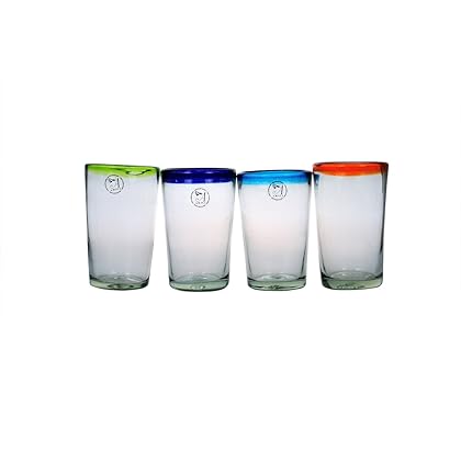 Amici Baja Hiball Glasses, 19 oz - Set of 4 is best for youAmici's mouth blown, rustic, handmade Mexican Recycled Glass Hiball is packed in the following assorted colors: Orange, Blue, Aqua and Green. Each glass is hand made by skilled artisans in Mexico using recycled glass. Six inches in height with a capacity of 13 ounces. Dishwasher safe. Expect variances in height and width as this is the beauty of hand made glass.