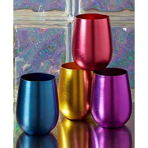 Set of 4 Retro Aluminum Wine Glasses is best for youKeep the drinks flowing at your next gathering with this Set of 4 Retro Aluminum Wine Glasses. With durable construction they are perfect for your home bar or outdoor entertaining. Aluminum glasses are naturally cool and can even be pre-chilled in the freezer. Set of 4 Wine Glasses, 21 oz., each. Dishwasher safe.