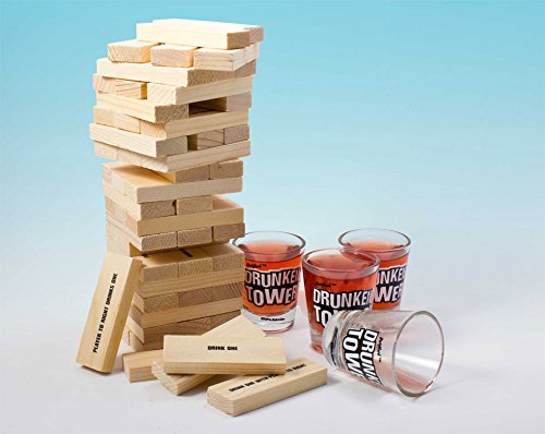 Homeware Drunken Tower Drinking Game by Homeware is best for youThe Grab A Piece Drinking Game! Set Includes 4 Shot Glasses & 60 Wooden Stacking Blocks For 2 - 4 Players Made of REAL WOOD & High Quality Glass For Ages 18 and up *Not recommended for Use with Alcohol*