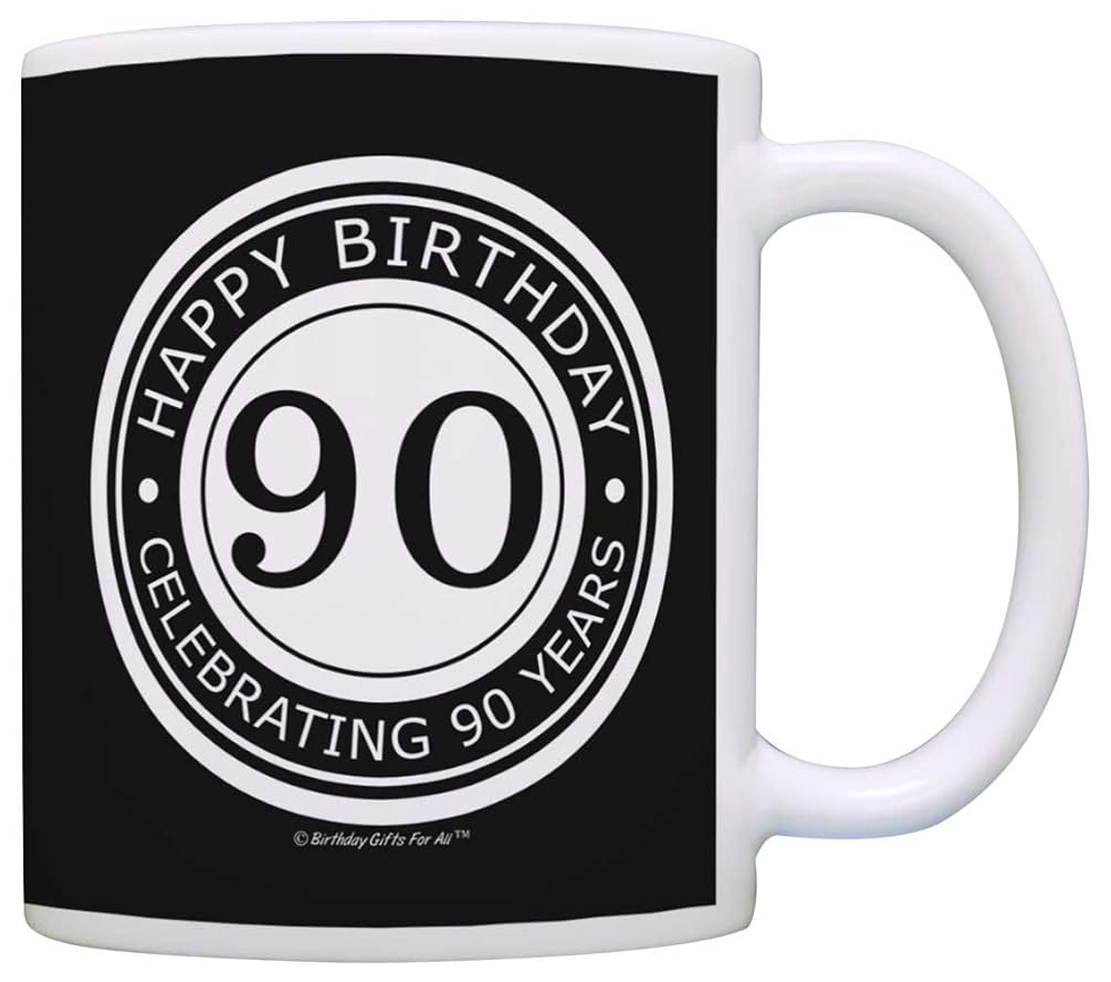 90th Birthday Gifts For All Happy Birthday Celebrating 90 Years Gift Coffee Mug Tea Cup Black is best for youPackage Quantity:1 | Color:Black This traditional 11 ounce white ceramic coffee mug is perfect for any hot beverage. Wide mouth and large C-handle allow for easy, every day use. Whether drinking your morning coffee at work, or sipping on a hot cup of tea at home, this mug is up to the task. Microwave and dishwasher safe for your convenience. All designs are lead free.