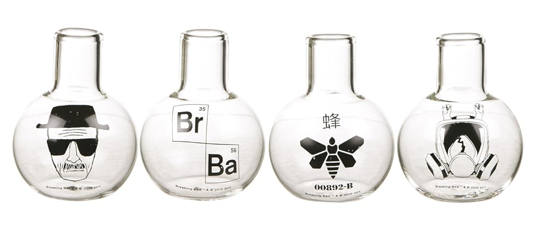 Breaking Bad Test Tube Shot Glasses Set is best for you- Breaking Bad Test Tube Shot Glasses Set- 4 individual designs- Not suitable for use with hot or flaming drinks- Boxed, great gift idea- 100% official merchandise. Get any party started in style with the Breaking Bad Chemistry Glass shot glass set! Remember to drink responsibly!- Same Day Despatch