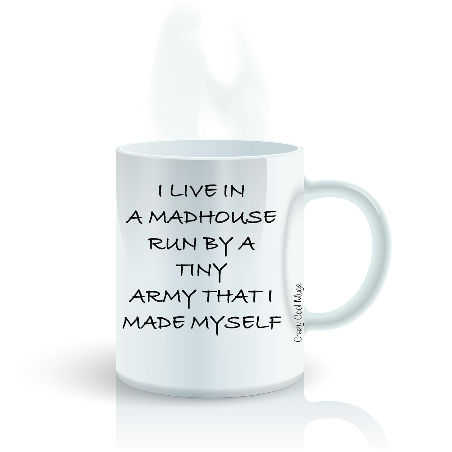 I Live In A Madhouse Run By A Tiny Army - 11 OZ Funny Coffee Mugs is best for youCrazy Cool Mugs are perfect for making a coffee statement. Keep for yourself or give as a gift. Everyone will love the thought that went into picking out a mug. Give to family, friends, coworkers, acquaintances and employees. Never give a bad gift again, these will be cherished for years to come.