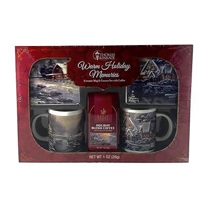 Thomas Kinkade Warm Holiday Memories Ceramic Mug and Coaster Set With Coffee is best for youThomas Kikade Ceramic Coffee mug and coaster set with coffee.