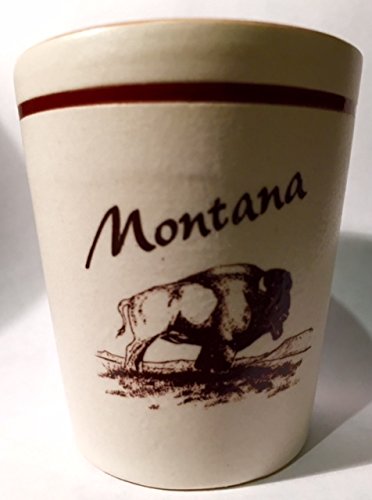 Montana Brown Buffalo Ceramic Shot Glass is best for youHere's a very rare and hard to find souvenir collectible shot glass from Montana. It's a 5x6cm style shot glass measuring 2.25' tall and 1.8' in diameter. It depicts a variety of scenery found in this beautiful state.