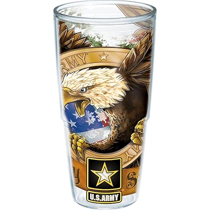 Tervis 24 oz. US Army Eagle Tumbler 24 oz. Tumbler is best for youVirtually unbreakable, Tervis Tumblers are the strongest drinkware available. The double wall insulation reduces condensation & keeps drinkshot or cold longer. US Army Eagle wrap design is sealed between wallsof tumbler. Fits most cup holders.