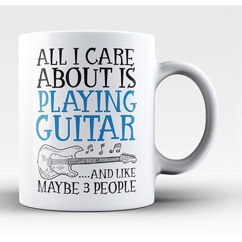 • The All I Care About Is Playing Guitar! -11-oz Musician Guitarist Coffee Mug Cup Made of High-Fired White Ceramic with Large Easy-Grip Handle is Perfect Gift Idea For Player Uncles, Fathers & Sons is a