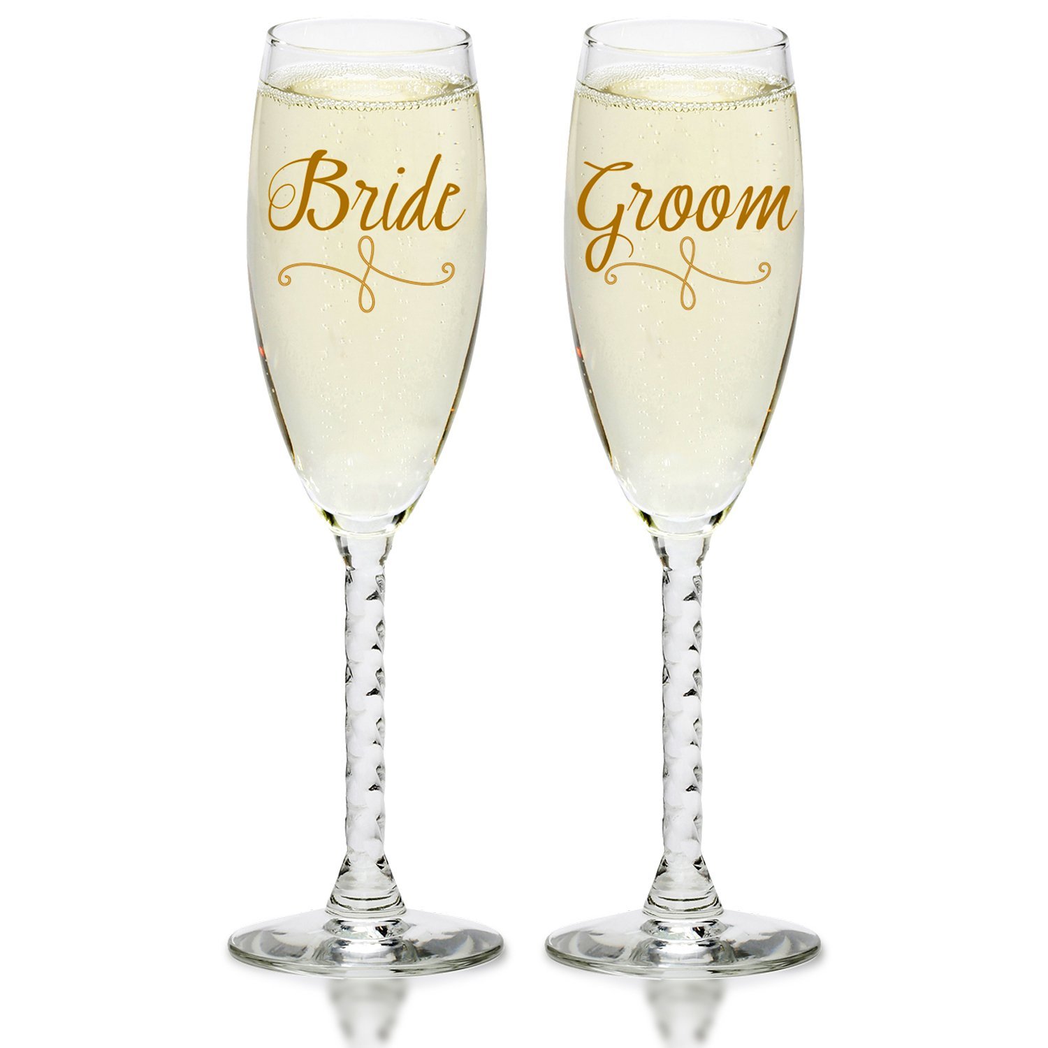 • The Smart Tart Bride & Groom Gold Wedding Champagne Glasses, Elegant Toasting Flutes is a