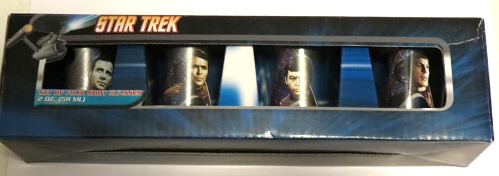 • The Star Trek Set of Four 2 oz Shot Glasses-Scotty, McCoy, Kirk, and Spock is a