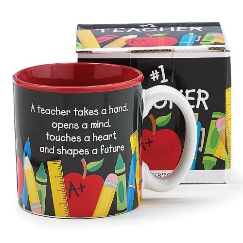 • The #1 Teacher 13 oz Coffee Mug with Pencil, Rulers, Crayons, and Pen Accents Inexpensive Teacher's Gift is a