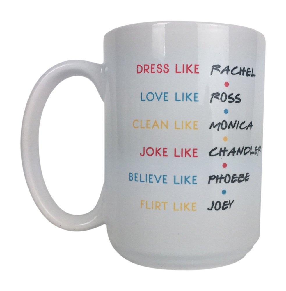 • The Friends TV Show "Dress Like Rachel., Love Like Ross.." 15 oz Deluxe Large Double-Sided Mug is a