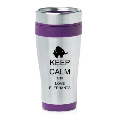 • The Purple 16oz Insulated Stainless Steel Travel Mug Z407 Keep Calm and Love Elephants is a