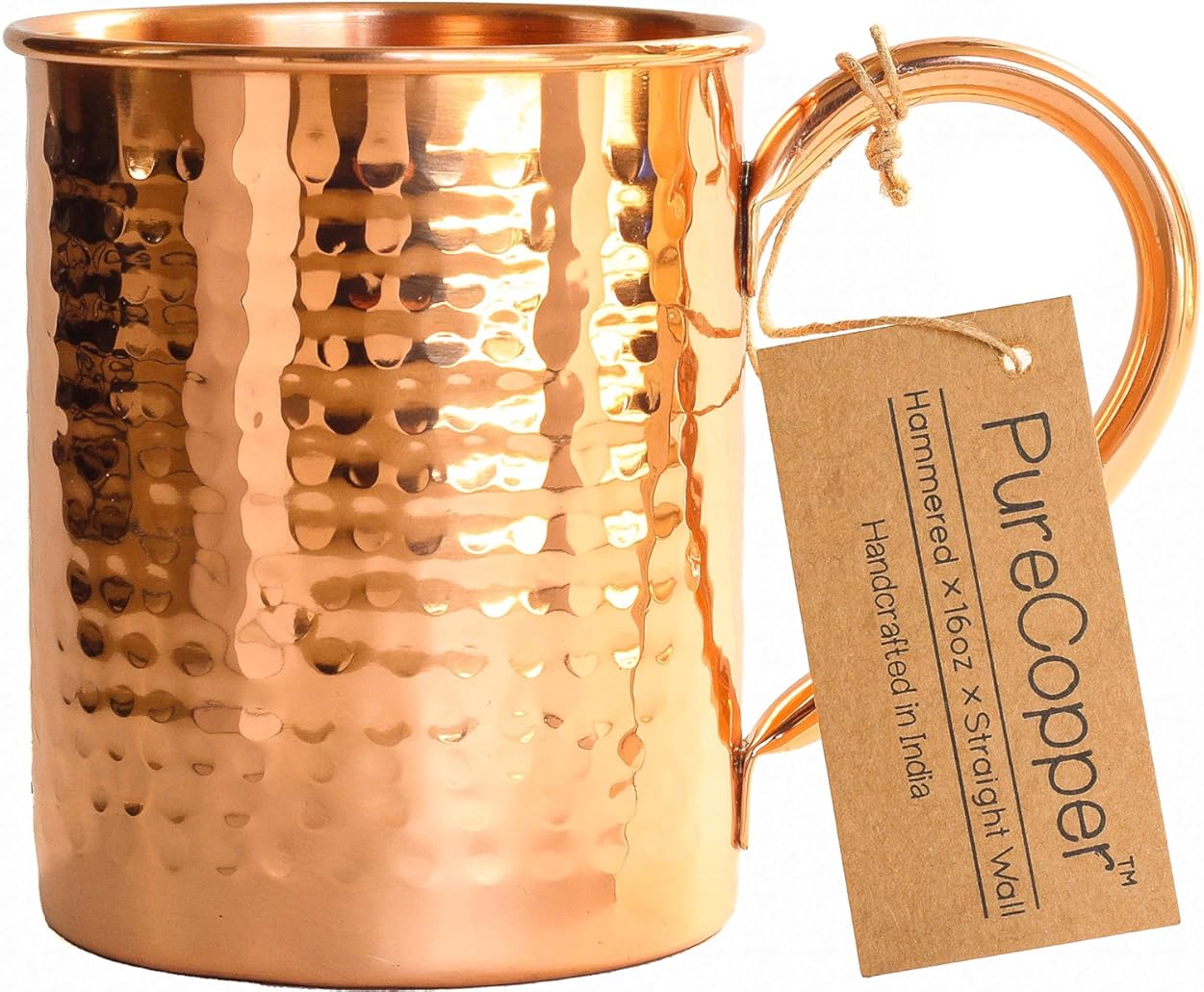 Why Use 100% Copper Mug for Moscow Mule - 16oz Hammered Pure Copper Thick Wall - BONUS Recipe Cards! ?