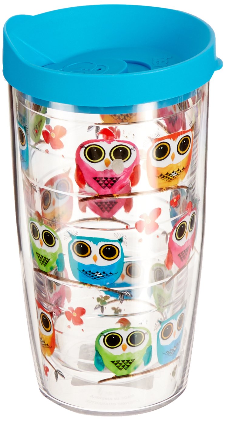 • The Tervis Multi-Color Owls Wrap Tumbler with Turquoise Lid, 16-Ounce is a