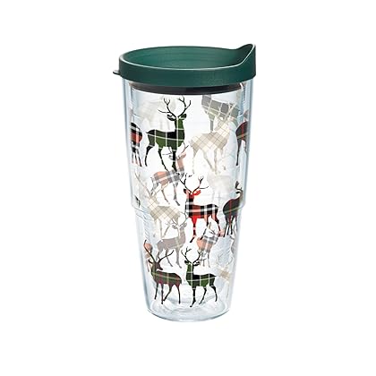 • The Tervis Plaid Designs Deer Tumbler with Travel Lid, 24 oz, Clear is a