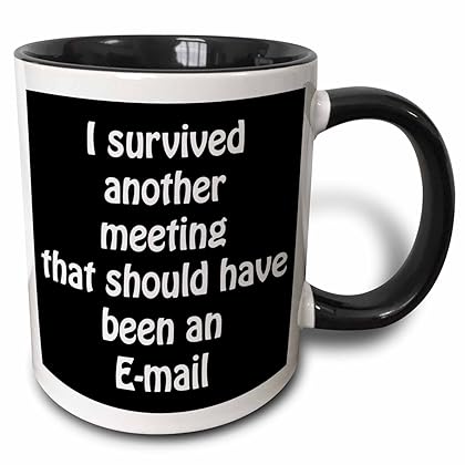 • The 3dRose I Survived Another Meeting That Should Have Been An Email Two Tone Black Mug, 11 oz, Black/White is a